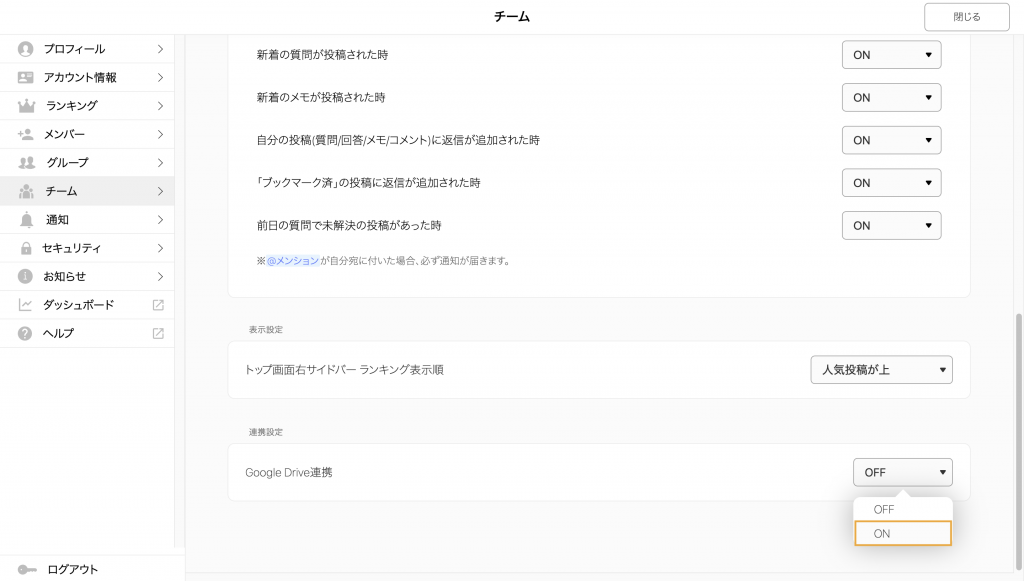 【Googleドライブ連携 チーム設定方法】